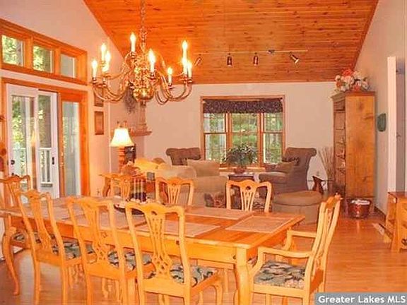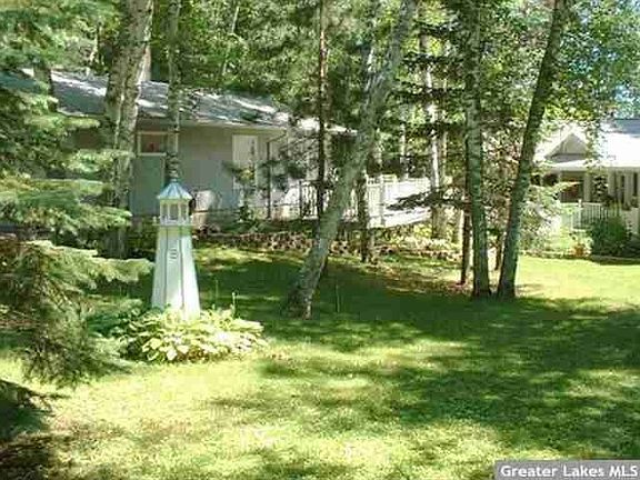 Love at first sight! This gorgeous cedar sided home is nestled into the hillside, surrounded by perennial gardens and beautiful pines & birch. A covered porch leads into a spacious 20x9 kitchen with cabinets galore, large open dining area and living room with a gas fireplace. Family room featuring a second fireplace, 2 bedrooms, 2 bathrooms and laundry room complete the main level. The lower walkout level houses another family room, 2 bedrooms and a 3/4 bath. The detached garage is heated and insulated with a deck sitting amongst the flowers. A large pole building houses all of the toys! All accessible by an asphalt drive - a must see!