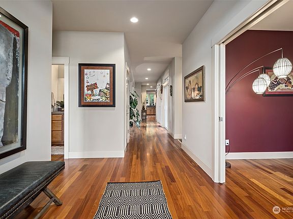 Single level living! Beautiful Cape Cod exterior, contemporary interior with extensive upgrades. Designer fixtures, clean modern lines & custom touches throughout. Luxurious hardwood floors. Gorgeous kitchen w/ lg island, open dining & living rooms all surrounded by the private courtyard. New leathered granite counters, fridge, microwave, interior paint and bamboo flooring in Primary BR. Lush landscaping with gated access to trail leading to forest lands. Handmade gate door to the trails and smokehouse stay. Elegant master suite w/walk in-closet & custom stone shower, additional bedroom suite & den/3rd bedroom, 2 car garage, just steps to the forestland & easy access to downtown. In pristine condition, lovingly cared for and maintained!