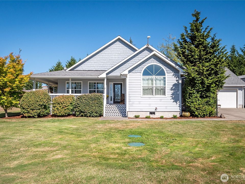 Discover this stunning home featuring a wrap-around covered deck with stylish lighting, set on 2.010 acres of serene landscape.With 2,451 sq ft of living space,this home offers three spacious bedrooms and two full baths. The inviting living room boasts a gas fireplace, while the kitchen impresses with granite countertops, a large island with a cooktop,soft-close drawers, and beautiful white cabinetry. Enjoy double ovens, a walk-in pantry, and tile flooring throughout the kitchen.The primary suite features LVP flooring, a walk-in closet, and a luxurious double-headed tile shower with a heated tile floor.Outside a 30 x 60 shop with a commercial air compressor and car hoist awaits, along with an RV shed equipped with Electrical septic hookups.