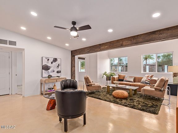 GREAT AIRBNB OR UA RENTAL OPPORTUNITY!!! Don't miss this beautifully remodeled 4 bedroom, 2 bath home with den AND studio guest house complete with a full kitchen and bath! Fall in love with the bright and open interior. Careful attention was made to ensure the style and finishes made the home feel modern yet warm and comforting including tan poured and scored concrete flooring in main living areas and one of the bedrooms, new high end plush carpeting in bedrooms, Terra cotta accent walls, warm hue led lighting, natural wood finishes and more! Enjoy preparing dinner in your brand new kitchen featuring espresso colored kitchen cabinets, new SS appliances and beautiful butcher block countertops. Adjacent, through the original archway, is the formal dining area which leads you to the back yard to enjoy a nightcap by the iron gas firepit and offers access to the detached guest house! If location is at the top of your list then this home won't disappoint. Close to the Loop bike path and within a 6 minute drive to Downtown Tucson and 7 minutes to the UA, you really can't beat the convenience! Come visit this beautiful home before it's gone! Owner/Agent.