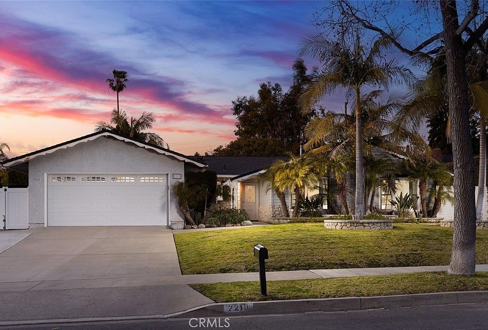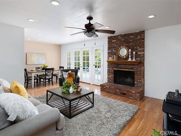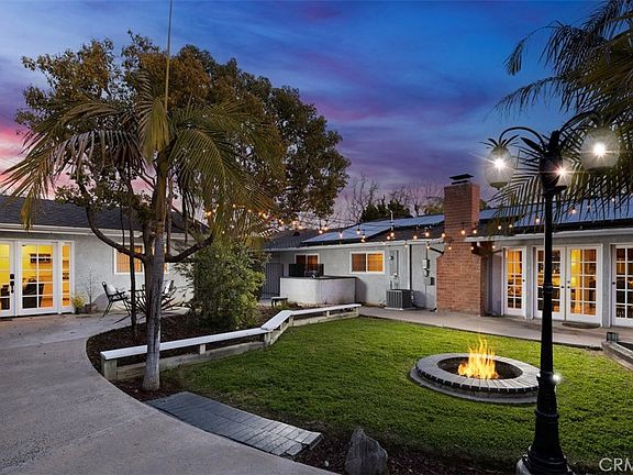 Modern and updated, this delightful home with a guest house and Villa Park schools is tucked away on a cul-de-sac street in Northeast Orange. Palm trees, grass, and a welcoming walkway with beautiful plantings greet you at their custom front door with etched glass and glass block sidelights. The remodeled kitchen is complete with newer warm-toned cabinets, granite counter tops, black and stainless appliances including a striking glass and stainless steel range hood, pantry area, a beautiful garden window, and a pass through open wall to the living room creating a great room atmosphere and view to the fireplace and out to the backyard. The light and bright Living Room features a fireplace with a raised brick hearth and wood mantle, many recessed lights, and opens to the Dining Room, sharing a wall of French doors with a view of the park-like backyard. 4 spacious bedrooms with ample closet space and 2 gorgeously remodeled baths including a large primary bedroom with well-appointed private bath featuring granite counter on an Ethan Allan cabinet, dual sinks, and a large walk-in shower with white Carrera marble tile. The hall bath has been updated with a deep tub for soaking with hexagonal tile surround and a marble countertop. So many updates! Bathrooms, Interior recently painted, new high efficiency LED lighting, heating and AC installed 2014, newer carpet in bedrooms. The home also has solar panels (leased- Buyer to assume), located on side and back of house, and an electric car charger! The home is approximately 1,557 square feet in the main house and 432 square feet in the ADU, with a 9,583 square foot lot. Beautifully remodeled in 2022, the studio features French doors, a full kitchen area and room for living room, dining, and bedroom areas, along with wall of cabinetry. The stylish bathroom has cabinetry with gray quartz countertop, Kohler sink, and shower with pebble stone base. Backyard can be your own private oasis! It has the upmost in privacy surrounded by mature compact trees. There are walkways and patios, charming light pole, and a wood burning firepit that serves a focal point. Gated side area, perfect for a dog run or creating a separate patio area for the guest house. The 2-car garage has built-in cabinets and rafter space above for storage. With top-rated Villa Park schools and only ¼ mile to Orange Lutheran, fantastic shopping and dining options minutes away, and easy freeway access, you will love the wonderful location!
