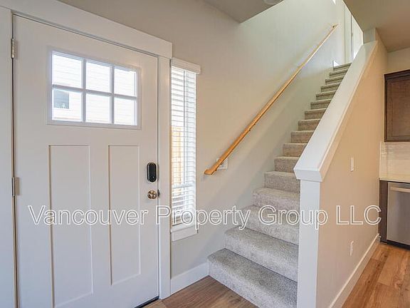 Welcome to this beautifully designed 2-bedroom, 1-bath townhome in La Center, WA with modern comfort. The open-concept main floor features a bright living area and a sleek kitchen with stainless steel appliances, granite countertops, and ample storage. The dining area opens to a cozy porch and a fully fenced backyardperfect for relaxing and entertaining. Upstairs, you'll find two comfortable bedrooms, a full bathroom, and a convenient stackable washer and dryer. The fenced yard backs onto peaceful green space, creating a private, serene setting. Water & sewer utilities included in rent! Schedule a showing!