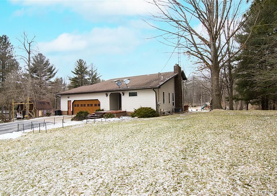 This property will sustain the nature lover's soul! Nearly 14 acres with everything you could want to enjoy the Michigan outdoors. Entertain at the pavilion and fire pit on the shore of the pond with sandy beach, zip line, and water slide. Hunt or admire turkey and deer from the stand in the wooded back acres. 2700 sq ft pole barn and shed in addition to the 2.5 car attached garage provide plenty of room to store your "toys" and hobbies. "Campground" area with RV hookups for when you want to invite your friends to camp in your own backyard. Multi-level deck with swimming pool and room for cooking out. The house itself gives that "up north" feel with plentiful wood and pine accents and a 3 seasons room provides a wide multi-windowed view of the property. Water heater and furnace can be switched between gas and wood as fuel. There is so much love and care put into every detail of this house, check out this tranquil woodsy paradise!