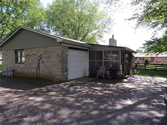 Very well maintained stone Ranch on 3/4 acre with beautiful mature trees and a long drive that leads to the attached garage. Don't miss this spacious three bedrooms two bath country style living. Set on the covered screen porch and enjoy the completely fenced in back yard backed up to farm fields. This home has many updates to include roof, windows, fireplace insert(gas), driveway, pressure tank, and carpet throughout. This home could be yours and it includes a HOME WARRANTY!