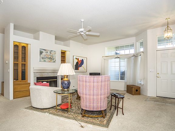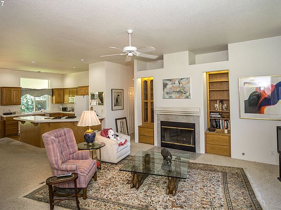 Conveniently located in a quiet, 55+ gated community, this 2 bed, 2 bath contemporary home with office, features 10 ft. ceilings throughout. Open concept floor plan, gas fireplace in the living room and plenty of cabinets in the kitchen.Gas cooktop in islan, electric oven. The master suite is privately located on the opposite side of the home from the office and second bedroom, andfeatures a large walk-in closet and en-suite bath.