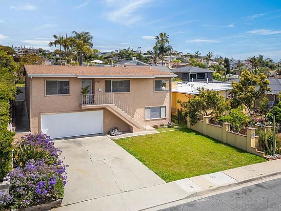 Welcome to this meticulously maintained 3 bed, 2 bath 1,862 sq. ft. bay view home nestled in the heart of Bay Park. Set on an expansive lot, this charming home offers serene bay views from the spacious living room, primary suite, and backyard. The kitchen features newer stainless steel appliances including a gas range, beautiful wood cabinetry, and a breakfast bar. This home also features a spacious 21’ x 13’ bonus room (approx. 273 sqft.) on the lower level with a separate entry for ADU potential and an adjoining 21’ x 12’ workshop (approx. 252 sqft.) for hobbies or storage. The bonus room & workshop (permits not known) are not included in the 1,862 sqft., which adds approx 524 sqft. to the total square footage. Upgrades include refinished hardwood floors in all bedrooms, newer water heater, upgraded plumbing, brand new electrical panel, newer carpet, and newer interior paint. The oversized backyard with alley access offers excellent possibilities for an ADU, multiple garages, or future second story addition to maximize the views. The backyard features a patio with pergola, grass lawn, mature fruit trees including avocado, orange, lemon, fig, and olive. The property also features an attached two car garage and a large driveway. Enjoy walkability to highly rated Bay Park Elementary. Centrally located close to Mission Bay, world class beaches, Tecolote Canyon and Golf Course, USD, and local restaurants. Incredible opportunity to live in this highly desirable coastal community on a spacious bay view lot with income potential and enjoy all that this lifestyle has to offer!null