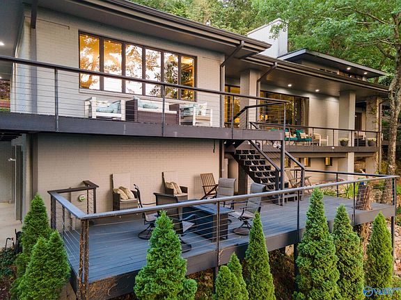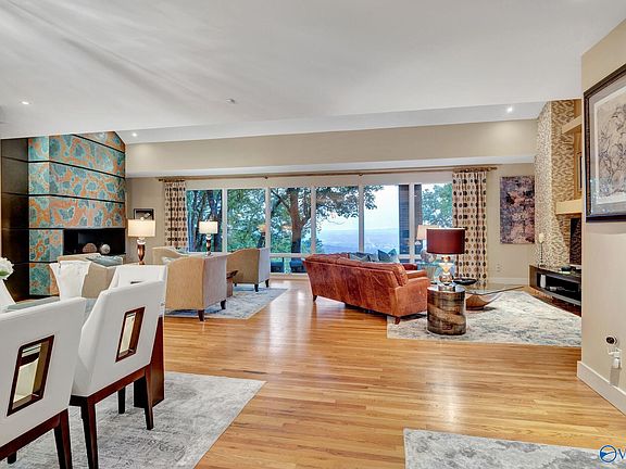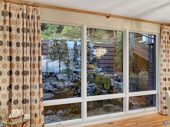 SEE VIDEO at Virtual Tour Link Below. A work of art designed by noted Huntsville architect Harvie Jones sits tucked in the trees w/glorious city, westerly & rocket views. Exquisitely updated w/quality finishes, upscale appliances and finishes. Layout offers flexible indoor & outdoor spaces ideal for any size group. Main living area is highlighted by wall of windows overlooking the city. Kitchen features custom lacewood cabinets, exotic granite, fabulous storage & JennAir appliances. Master suite w/private view deck offers updated his & hers bathrooms & closets. 3 guest suites. Separate office & library. Outdoors enjoy abundant privacy, heated pool, multiple decks, two waterfalls & koi pond.
