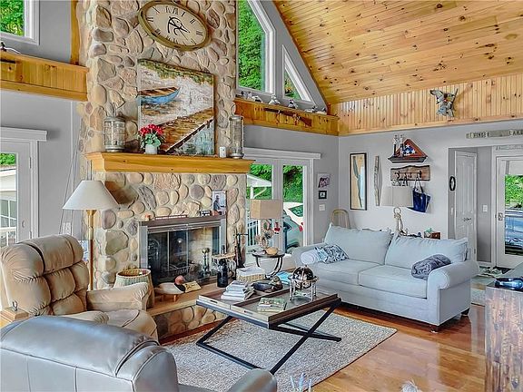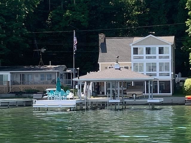 All-Inclusive Lake Home offered for the first time! Start your morning overlooking the lake with a workout from your personal yoga studio! Fully furnished 3 bedroom, 3 full & 2 half bath home on Seneca Lake has all the details like powered shades, ash floors, stone fireplace, Owner's Suite, Guest Suite, AND full In-Law Suite with separate entrance. 2 enclosed year 'round porches and 1 screened porch. Permanent generator, Elevation Certificate. They've thought of it all. Composite exterior deck overlooks the water with a permanent composite deck & 2 covered slips, 2 - 7000lb lifts, 21' speed boat, 21' pontoon boat, 2 jet skis with lifts, more. This house is magnificent!