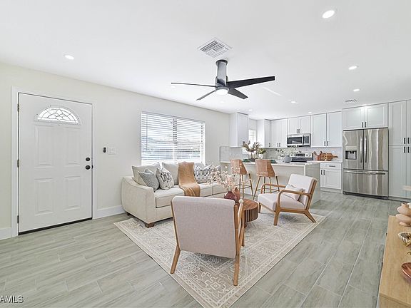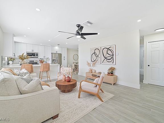 Welcome to this Stunning renovated home in Fort Myers Villas, the property has been totally renovated from top to bottom. Step inside, you'll be greeted by stunning wood plank tile that graces the entire house with 5 inches base board gives it the modern feel. The huge open concept Livingroom and large kitchen offers great practical space for family and friends gathering and partying. This luxury kitchen carries brand new hardwood cabinets with soft closing features, beautiful quartz countertop, peninsula with waterfall and stainless-steel appliances. Bathrooms have been totally redone with new tile showers, new toilets, and new vanity. Home has brand-new LED lighting throughout the entire house. Property is in X zone, so you don’t have to worry about flood insurance. Property provides new AC and oversize lot. The rare Oversize lot with big practical space provides endless Florida outdoor living lifestyle. The Villas is a fantastic place to live, conveniently located near Bell Tower, Regal Cinemas, popular restaurants, schools, county parks, hospitals, and provides easy access to I-75 and Jetport. The community park on Sunrise Blvd is a bonus. You do not want to miss this.