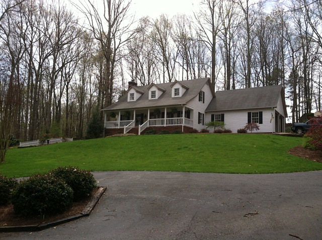 You would never know this property is in Halifax County, with its winding driveway with stone walls leading to the top that opens up to a beautiful two story home. The property features open floor plan that has great room with fireplace, dining area and kitchen with hardwood floors. The kitchen has one of kind granite counter tops, custom cabinets, and all the appliances. The main level has a large master bedroom with full bath and large walk-in closet. There is also a large storage room that is used for a laundry room on the first floor. The second floor has two bedrooms, full bath, and storage areas. The exterior has mixed hardwoods surrounding the property. There is a large front porch that over looks a professionally designed landscaped area. There is also a detached garage/workshop with water and electricity. Plus another storage building that can be used for storage or workshop. There is even a custom made chicken house, with four chickens. There is also a dog pen, grape vines and other fruit trees, outdoor patio speakers plus sound system. The house has a backup generator that does the whole house.