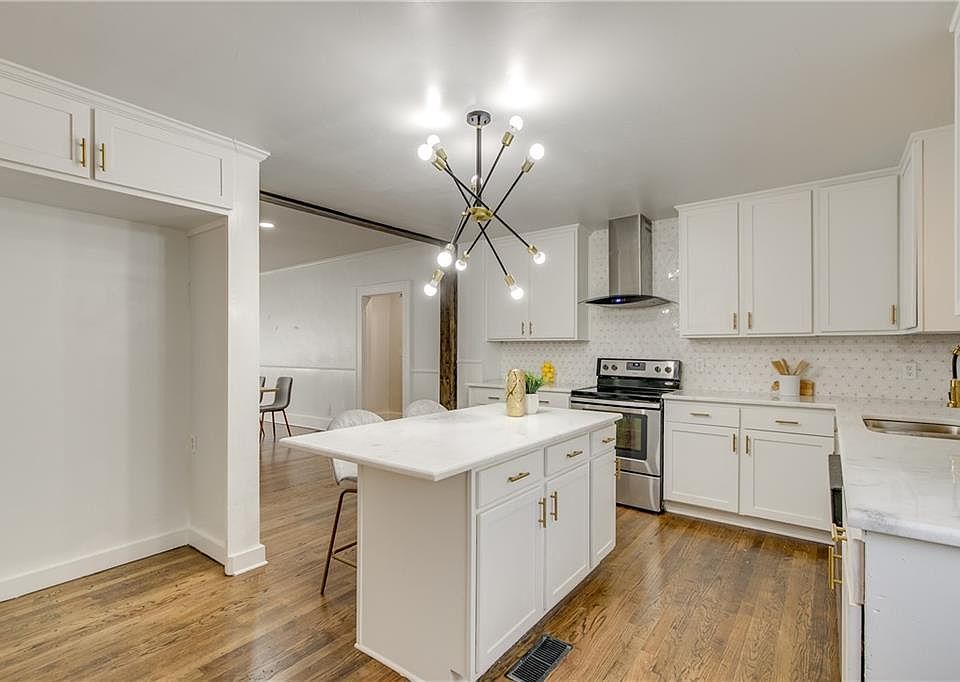 Location! Location! Location! Welcome to this 3Bed/2 bath + 1 Large Home office and a large garage for private parking. This upscale restored beauty with an Open Floor Plan is located in Okc Urban Core. Located minutes from the Plaza District, Paseo, Midtown, downtown OKC and all the beautiful places Oklahoma has to offer. This modern home features a dreamy white kitchen with Gold accents, recessed lighting throughout, Refinished HW Floors, Custom cabinetry, marble shelves and a large centered island to entertain all your guests. The Masters bedroom features a large shower with all the stylish and luxury updates of custom vanity consoles in both bathrooms, double sinks, modern tiles and modern motion lights. The yard is large for fun and play time.