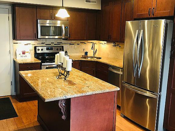 Meticulously maintained & move-in ready! Fully updated kitchen w SS appliances, granite, breakfast bar. Open concept living/dining area w wood-burning fireplace and 2 sliders to private patio. Powder room, laundry, and attached garage complete the first floor. Spacious master bedroom and full bathroom upstairs. 2nd bedroom includes skylight and entry to storage attic. Brand new vinyl fencing installed June 2021 throughout community. This end unit offers additional privacy, adjacent to open space and backing to woods. Only 1 block to NYC bus and less than 1 mile to train!