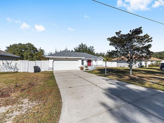 Lovely 3/2 home with title floors throughout. 2022 Roof and HVAC. New garage door December 2024. Home has spacious living area. Lots of natural light. Primary bedroom encumbers the entire side of the house giving you a large bathroom and room for a sitting area or office desk. Breakfast nook is next to covered back porch. The backyard has a lovely view of a tree farm. This home is located within 3 miles from the new high school and also close to all of the retail shopping that is being developed along hwy 484.