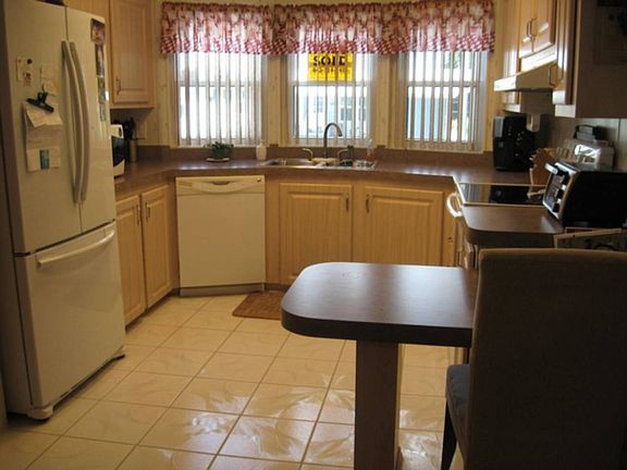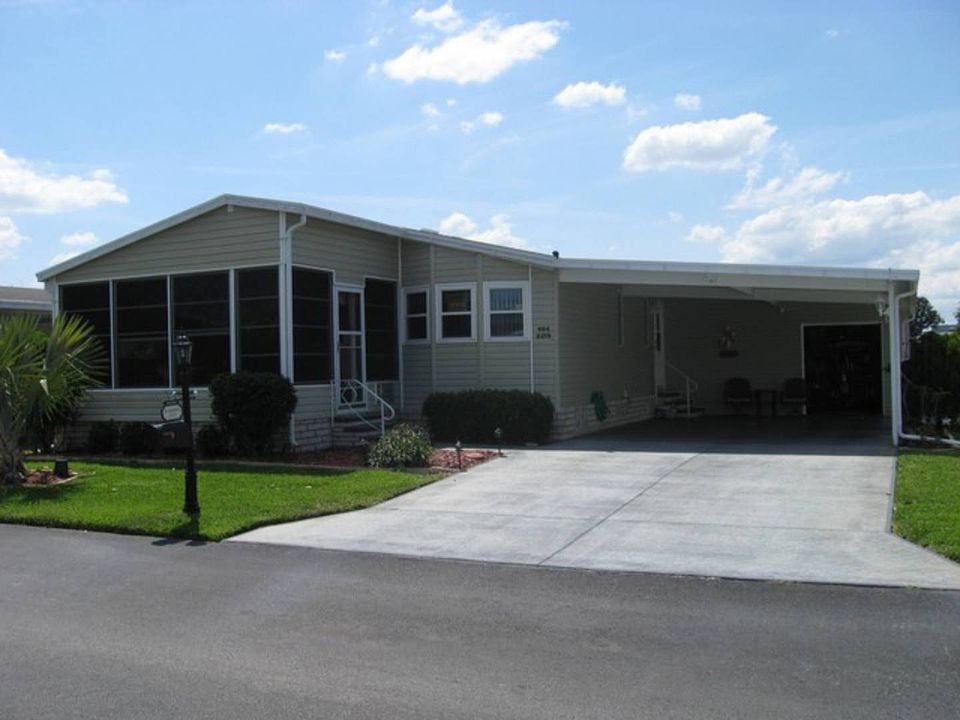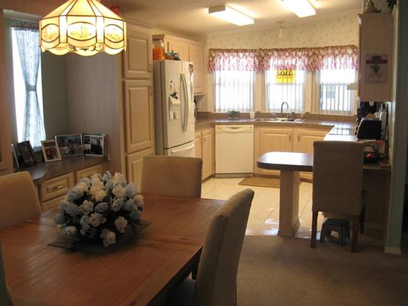 Super Sharp!! This lovely well-maintained home is located on lot lease land in beautiful Four Lakes-a 55+ gated community. It features two bedrooms, two baths, and formal dining area with built-in lighted hutch. Yhe kitchen sports updated appliances including a stove that can also be convection, plenty of cabinets, gorgeous tiling, and a breakfast bar. The large master bedroom has a walk-in closet and a master bath with more lovely tile, walk-in shower, and a linen closet. The front Florida room is spacious...12' X 16', and has vinyl windows, carpeting and air conditioning. The extra wide deco drive leads to a large..!2' X 18' golf cart shed, which includes the golf cart. This home is so tastefully done and so meticulously cared for and..... some furniture is negotiable!
