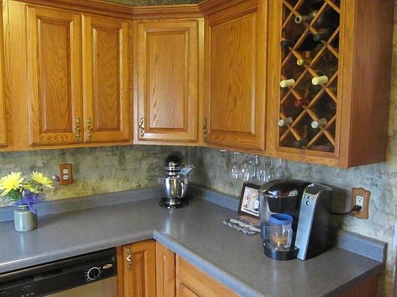 New leaf guard gutters in 2010, along with roof and vinyl siding; deck had rustolium restore applied in 2013; sliders to deck; new furnace and water heater in 2005; private deck off back, easy living ranch style with updated kitchen. Utility shed.