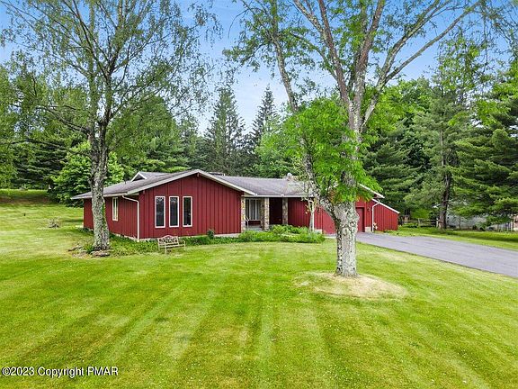 MULTIPLE OFFERS - HIGHEST AND BEST OFFER BY 12noon on MONDAY, 6/19/23. Highly sought-after Stroudsburg neighborhood near Glenbrook on a QUIET CUL-DE-SAC. This well-built RANCH home offers ONE LEVEL living, a welcoming FRONT PORCH, on almost an ACRE - (.92). ESTATE SALE - SOLD AS IS. 3 Bedrooms, 2.5 full Baths, One bathroom is renovated with walk-in shower. Primary bedroom with large WALK-IN CLOSET, en-suite bathroom - double sinks, tub/shower, Bright FORMAL Dining room, Eat in Kitchen - solid wood cabinets, granite countertops open to LIVING ROOM with STONE gas fireplace, Wood floors, SUN ROOM/SECOND LIVING room for additional year-round living space, STONE patio, spacious wood DECK leads to FLAT backyard. Mudroom, 2 car garage and shed. , 200 Amp service. Minutes to downtown STROUDSBURG and easy commuter access I-80 and 33, 90 miles from NYC and Philadelphia