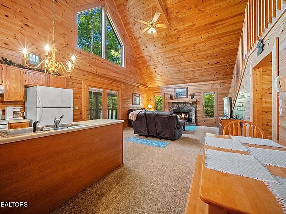 WOW FACTOR AT AN UNBELIEVABLE PRICE! 3BR/2 BA CABIN LOCATED IN SEVIERVILLE, TN--ONE OF THE MOST SOUGHT-AFTER RESORTS IN THE AREA WITH OUTDOOR POOL AND PAVILLION! BEING SOLD FURNISHED! This cabin has been used as a second home, but has income projections with an overnight rental program of $50k. Interior features include soaring vaulted tongue & groove ceilings, open floorplan, two bedrooms on the main level. Living room with stone accented gas fireplace, fully equipped kitchen with dining area, and access to the covered wrap around deck. Master Suite on main level. Third bedroom is a lofted bedroom with game room area with pool table. Super convenient location--only minutes away from Soaky Mtn Waterpark and other area attractions including Dollywood, Wonderworks, and Gatlinburg! **CHECK OUT THE VIDEO--Drone photography has been used on this listing. *Hot tub is not in working condition.