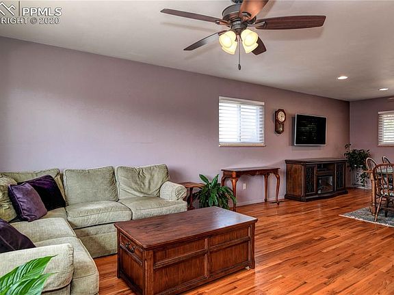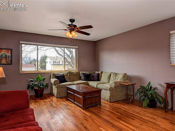Adorable Rancher, Open Floor Plan, Well Maintained, Pikes Peak Views From The Living Room...Inside This Charming Home, You're Greeted By A Bright And Open Living Area With Gleaming Hardwood Floors That Flow Through The Main Level...A Walk Out Dining Room Opens Into The Kitchen With A Cozy Breakfast Counter & Lots Of Cabinet and Counter Space; A Natural Place For Gatherings...Follow The Hardwood Down The Hall To The Master w/Private 1/2 Bath, 2 Guest Bedrooms, And Guest Bath...Downstairs, A Versatile Family Room Features A Gas-Log Fireplace Complete With Blower, An Office Area, Guest Bath, And A Non Conforming 4th Bedroom (No Closet Inside The Room, But One Just Outside The Room) Makes The Basement Area Perfect For Guests Or For A Growing Family...The Front Yard Is Xeriscaped For Low Maintenance. The Private Back Yard Is Nicely Landscaped With An Auto Sprinkler System, Storage Shed, And A 16 x 12 Covered Deck; Perfect For BBQ's, Entertaining, or Relaxing With Friends Or Family...Additional Features Of This Lovable Home Include A 1 Car Attached Garage, Lots Of Storage, With Newer Vinyl Windows, Furnace, And Roof...Centrally Located In A Desirable Neighborhood, Only A Half Mile To Palmer Park With 1200 Diverse Acres Of Hiking/Biking Trails And Open Space...With Easy Access To Restaurants, Entertainment, Ft. Carson, Peterson & Schriever AFB, UCCS, And Downtown On A Quiet Street, This Home Is A Perfect Place To Call Home...Don't Miss This Opportunity!