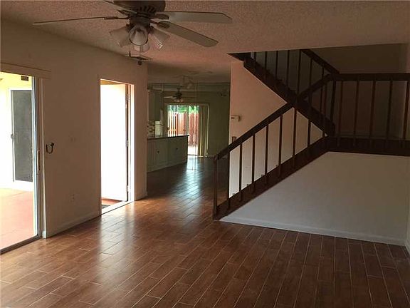 2 bed, 2 bath townhouse is a perfect place to call home. Wood laminate stairs, hallway and bedrooms. Tiled kitchen, dining room, living room, bathroom and laundry room (with washer and dryer in unit). Both bedrooms is on the second floor. Each room has their own balcony with sliding doors that gives wonderful light. Master bedroom is very large and has a huge mirrored closet. Its set on a corner lot and has a spacious fenced in front patio. Very Private unit.Has 2 parking space