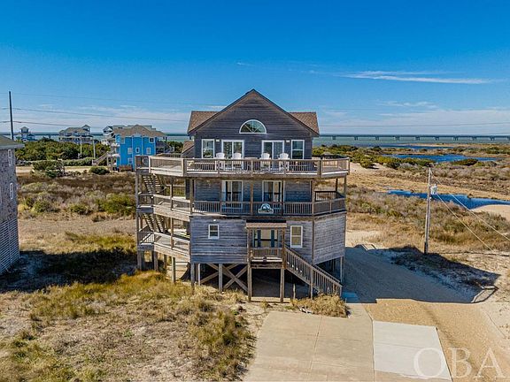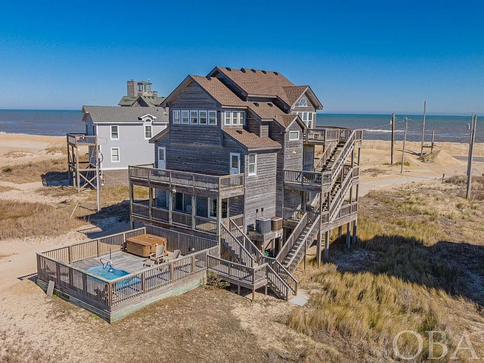 Experience coastal living at its finest in this stunning 6-bedroom, 4.5-bathroom semi-oceanfront home in the sought-after subdivision of Mirlo Beach in Rodanthe. Boasting unique accents and features throughout, this home offers spacious bedrooms, beautiful built-ins, and breathtaking views that must be seen to be fully appreciated. Step outside and you'll find yourself just steps away from the beach and sound, making it easy to enjoy water activities like kiteboarding and windsurfing. Take a hike on one of the many refuge trails in nearby Pea Island or simply soak up the stunning scenery. Back at the house, enjoy the many amenities this home has to offer, including a private pool, hot tub, sun decks, and an outside shower. The first-floor game room and open upper level with a kitchen and breakfast bar make it easy to entertain, while the additional sitting area in the Florida sunroom is perfect for relaxation. With views, views, and more views, this home truly has it all. Don't miss your chance to make it yours - schedule a showing today!"