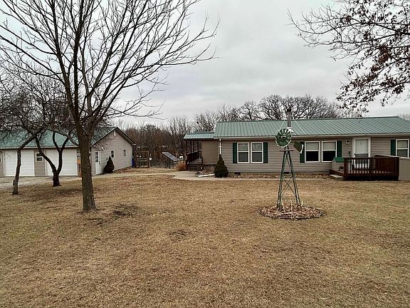 This 1179 sq. ft. manufactured home is located on 11 country acres just east of Coffey, MO in Daviess County. The home consists of a 5x8 back entry, 5x10 utility room, 19x11 eat-in kitchen and a large 20x15 living room with wood stove. It has 3 bedrooms with the 2nd and 3rd bedroom measuring 10x12 & 11x12, the master bedroom is 14x13 and the master bathroom is 7x10. It also has a full bathroom that is 7x5. The home has had several updates the past few years including flooring, new furnace (2020), wood stove (2021), solar panels (2022), washer (2020) and dryer (2018). Several other things have been added as well. There is a large partially covered back deck and an above ground pool for summertime fun. The acreage also includes a 3-car garage (30x40) with concrete and electricity. It has a 6x9 enclosed room with wash station for dogs and a washer and dryer and a 2nd room for an office or storage. Two of the bays are being used to park in and the third bay as a work shop. There is a concrete storm shelter with electricity, and numerous metal outbuildings. Also enjoy a raised garden and fruit trees consisting of plum, cherry, and apple. There's a fenced pasture and pond stocked with catfish, crappie, bass, and bluegill. *Present owners have considered this as their hobby farm with several animals, if the new owners want to continue running as a hobby farm, the sellers would consider selling all animals and other negotiable items to them.