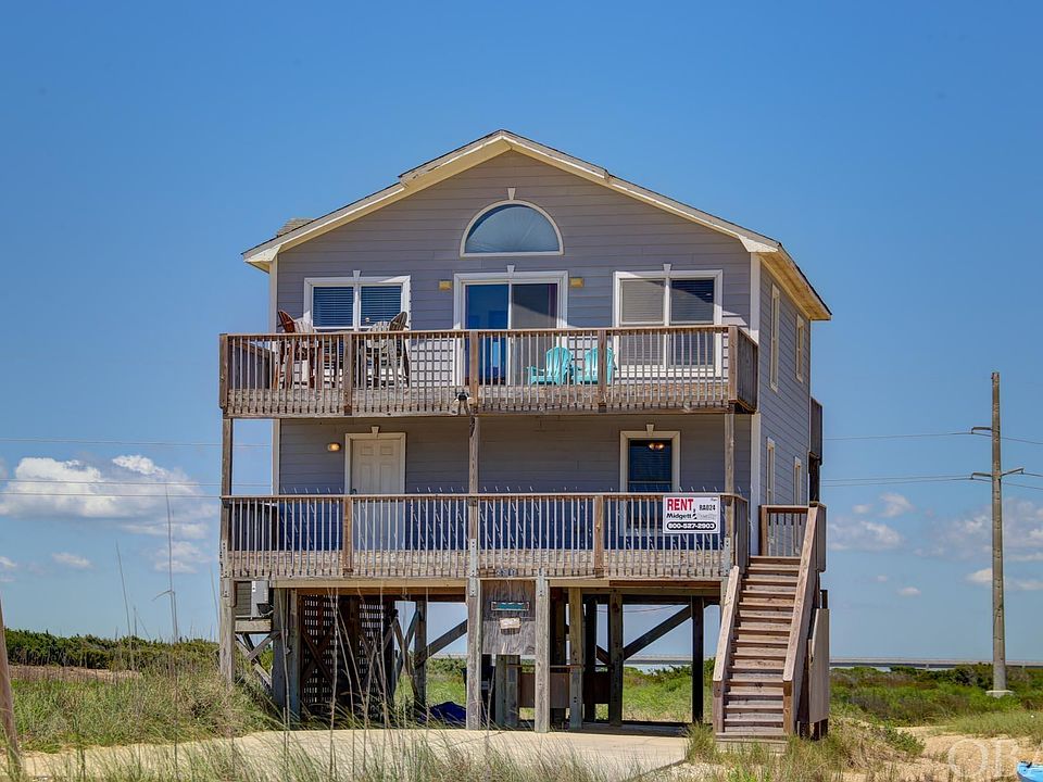 Upon completion of the New Jug Handle Bridge, this house will be in a cul-de-sac off a dead-end street with low traffic volume. Accessing the beach will be a breeze. Whether you are looking for a year-round residence, the perfect vacation home, or an investment opportunity, "Endless Views" is a must see! Feast your eyes on sunrise-to-sunset views from this lovely sound side home in the beautiful Mirlo Beach subdivision of Rodanthe. Bordering the Pea Island National Wildlife Refuge, "Endless Views" boasts spacious deck space to soak up some sun and take in refreshing ocean breezes. The first level has three bedrooms.. a king master bedroom overlooks the serene Pamlico Sound and a portion of the wild salt marsh. A queen bedroom with an ocean view and a sound view bedroom with a bunk set and pyramid bunk share a full bathroom off the hall. Upstairs is an additional king master opening to the wide sound view sundeck...the perfect place to watch the stars or drink in a sunset. The open living, dining, and kitchen area with breakfast bar, features ocean-to-sound views that will wow you! When you’re ready to stretch your legs, a quick walk will put your toes in the sand in no time at all. Community sound access is perfect for launching windsurfing and kite-boarding gear or exploring the calm, shallow waters in a kayak. Community tennis courts are also within walking distance. This adorable, cozy yet well-appointed cottage nestled away near the salt marsh and sound and still within steps of the ocean is just what you are looking for! Escape your troubles, leave the hum-drum behind and enjoy "Endless Views". Come and visit today!