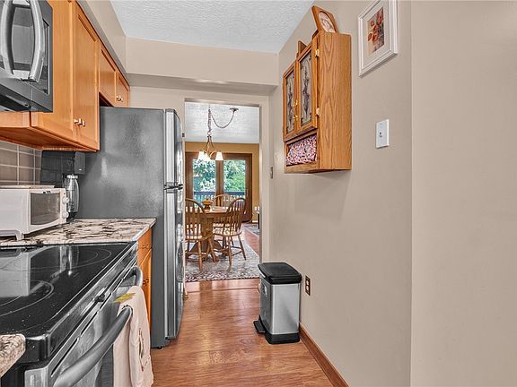 Two bedroom condo in the heart of Center Township! Updated kitchen with new cabinets, countertops and stainless steel appliances. Spacious living and dining room combination, with access to a nice deck for extra entertaining space. A half bath rounds out the main level. Two large bedrooms nice sized closets and a full bath in the upper level. Lower level is laundry (washer and dryer stay) mechanicals and room for storage. NEWER HVAC and Water Tank. The basement flooring is by Nature Stone and it is beautiful! Garage is oversized, additional storage and Nature Stone flooring. This end unit is surrounded by trees and close to everything!