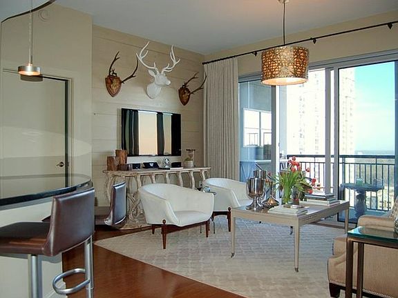 LUXE at Piedmont Park: Midtown's most popular condo high-rise. Executive 20th floor ONE bedroom with TWO full baths & TWO parking spaces + a Storage Unit. Many upgrades including cypress wall panelling, custom lighting, and custom blinds. BIG 20th floor North views of Midtown and Buckhead skyline. HUGE Mstr bedroom & Mstr bath. Also: Swimming pool, gym, concierge, 6th floor pet walk area. Walk to Piedmont Park (1/2 block!) and Midtown restaurants. Ideal for couple or single. Min 1 year lease. Owner/Agent. 2 flat screen TV'S installed already + washer/dryer.