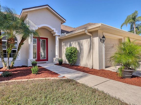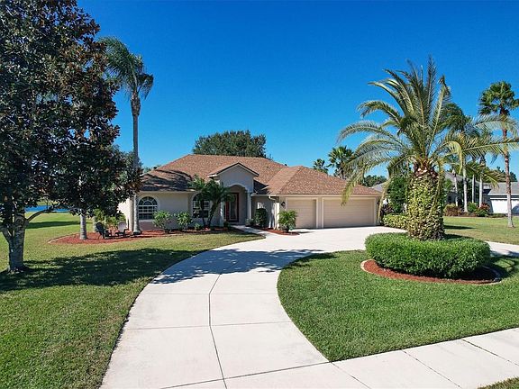Without a doubt the most well-maintained Country Creek custom built pool home! Built by Vision homes, the quality and craftsmanship is second to none! Upon arriving the curb appeal is impressive with a circular driveway approaching the 3-car garage. Extensive well-manicured landscaping provides that "Florida Feeling"! As you arrive via the double entry doors you are welcomed by spectacular lake views and an inviting floor plan that offers flexibility and space for each member of the family. The home features neutral tile and engineered hardwood floors and elegant finishes including crown moldings and tray ceilings while offering an amazing array of storage options. Den with French doors offers privacy when working from home. The spacious kitchen will channel the Gordon Ramsey in you and features a large breakfast nook, breakfast bar, aquarium window and wood cabinets. A pass-through double pantry provides the necessary space to organize and house the entire families favorite treats as well as baking supplies! Both the family and living room offer large sliding glass doors allowing outdoor and indoor spaces to meld as one when entertaining. All bedrooms are generously sized offering plenty of room for both family and friends! A large bonus room to the rear is flexible and makes an ideal game room or second home office. Private and breathtaking southern lake views-the perfect location for bird watching or an evening cocktail! Two undercover areas allow for flexibility within the outdoor spaces. Relax by the sparkling heated pool and spa. Pride of ownership is evident in this "move in ready" home! Country Creek is a great neighborhood with LOW HOA fees, NO CDD fees, larger homesites, excellent schools, and close to shopping and I-75 access.