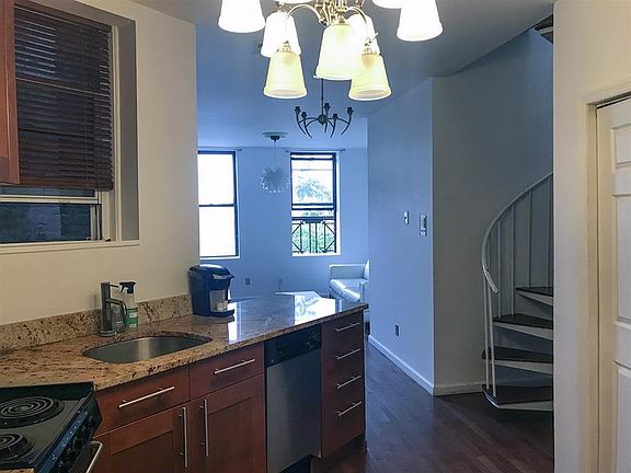 Commuters Delight! Beautiful NYC Style Unit. The first floor features, Modern Kitchen, Modern half bath, Living Room and Laundry Room This Unit has a Spiral staircase that leads up to the 2 Bedroom and full bath with Central air and Hardwood floor throughout Owner will consider a small dog upon Property Management approval