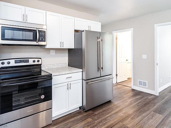Looking for more space? This 5-bedroom, 2-bathroom home has it all! With 2 bedrooms on the main floor, 1 upstairs, and 2 in the basement, there's room for everyone. The home boasts numerous upgrades, including new shingles and a kitchen with new cabinets, counters, flooring, and stainless steel appliances. Enjoy new carpet and vinyl plank tile flooring throughout, along with updated bathrooms. Fresh paint and plenty of windows brighten up the entire space. Outside, you'll find a fenced-in yard and a spacious 3-stall garage. Schedule a showing today!