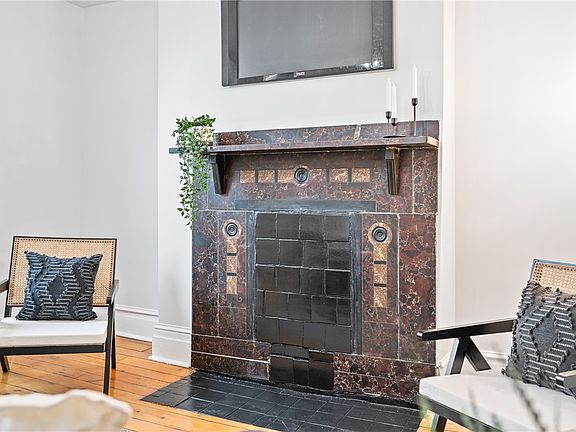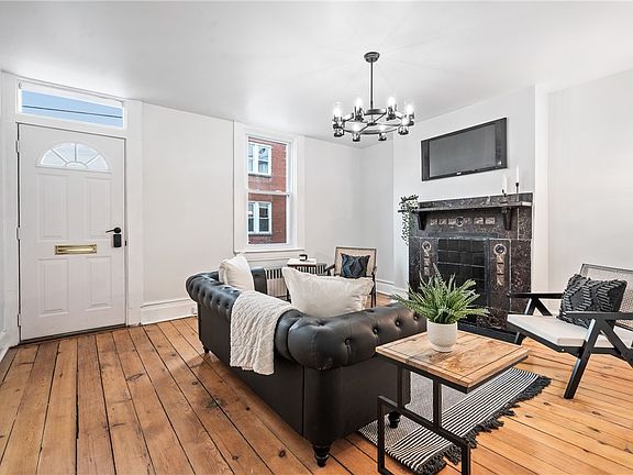 Discover Lawrenceville living at its finest! Walk or bike to the vibrant shops & restaurants of Butler St! Fenced-in yard for your furry friend! 2-car off-street parking w/the new cement pad! This 2-story home beautifully blends 19th-century details with today’s modern design. This home features a sleek white color palette, highlighted by gorgeous hardwood floors. The bright living room stuns with an original decorative stone fireplace and high ceilings! The updated kitchen showcases granite counters, a chic tiled backsplash, soft close cabinetry, and a gas stove! The 2nd floor showcases a spacious primary bedroom complete w/ample closet space. There’s also a versatile 2nd bedroom (huge closet!) which works perfectly as a home office. The bathroom is discreetly located off the 2nd bedroom and boasts a tiled shower and a modern sink vanity. Additional perks include a freshly painted basement which offers so much storage! Easy Strip, Children’s and University commute! Visit 222-42nd.com