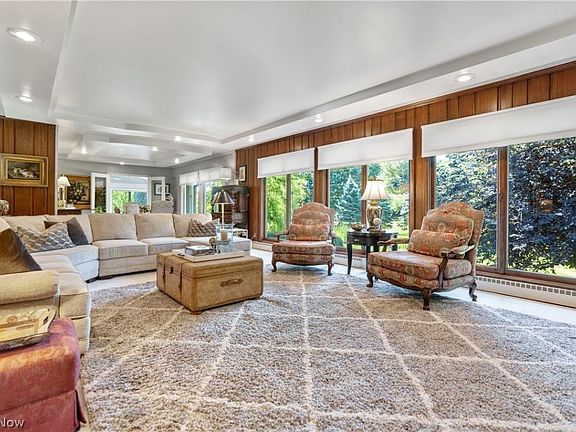 This is a very special property; well constructed/beautiful location; convenient to everything. Owners have loved this home, & taken good care of it. Nestled on 2.6 acres, in addition to a beautiful pond and tennis court (tennis court as is.). Foyer entry w/marble flooring, which leads to fireplaced Great Room w/built ins, mahogany tongue/groove paneling, & wall of windows overlooking gorgeous views. GRoom opens to DRoom w/trayed ceiling; access to rear, heated enclosed porch. Kitchen is lovely; eating area, appliances (microwave, dishwasher, gas range, double ovens; approx. 3 years), refrigerator (5 yrs.), tile flooring, pantry, Schrock cherry cabinets, corian counters, & leading to half bath, tiled flooring in first floor laundry w/closet & shelves. From this area is attached 3 car garage w/pull down steps for storage. Second level features OBedroom w/hardwood floors & double closets and private bath. Two other spacious BRooms w/hardwood floors & full bath in hallway. Lower level is a dream w/fourth BRoom featuring double closets & full bath, wonderful den/office boasting built-ins, desk, tongue/groove cherry paneling, wet bar, & cabinets/shelves. Walk-out bsmt. carpeted, access to rear yard/pond, blt. in cabinets/shelves, glass block, tongue/groove paneling, & windows overlooking rear pond/yard. Circular blacktop drive, stamped patio, newer fan for aerator/pond, two A/C units (one is 2020), new furnace (gas hot water heat; 2022), skylights approx. 5 yrs. See this one!