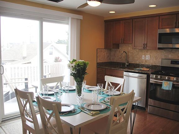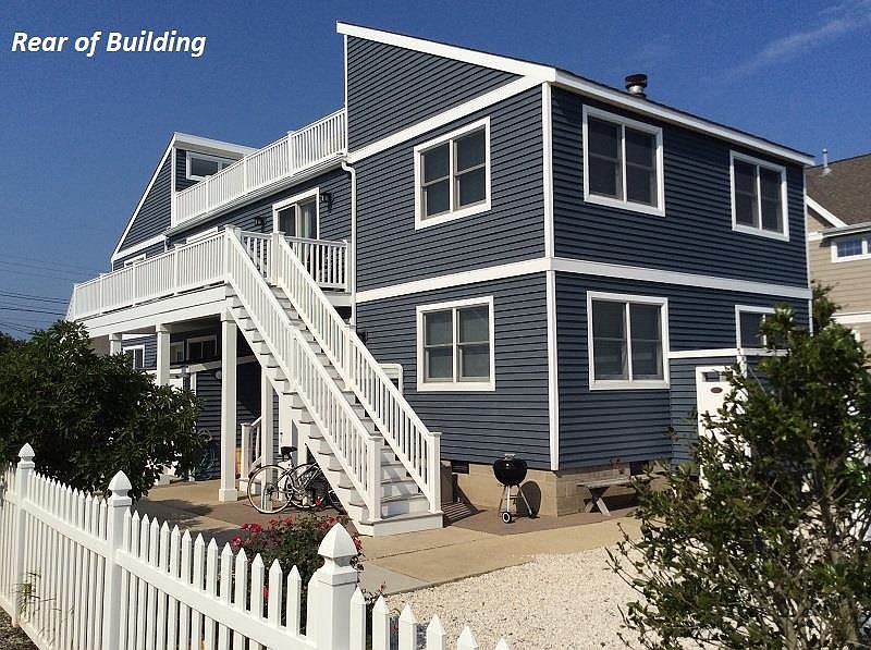 RENOVATED TOWNHOUSE LOCATED IN A QUIET NEIGHBORHOOD, JUST 1.5 BLOCKS FROM THE BEACH & A SHORT WALK INTO TOWN! This extensively renovated property offers a maintenance-free exterior and an inviting, bright & airy interior! Nestled in the rear of the building and in a quiet residential neighborhood, yet conveniently located just around the corner from nightlife, popular restaurants & beach bars, Stone Harbor's Public Recreation area (ball fields, basketball and tennis courts & a playground), and fishing & sunsets at the Public Dock located at 83rd Street and the bay!! The first floor offers 3 bedrooms & 2 full bathrooms, including the exceptionally large Master Suite. At the top of the stairs, you are greeted by a large & inviting Living Room, which spans the entire width of the building! A cathedral ceiling enhances the ambiance' & voluminous feel of this main living area. The newly renovated kitchen features granite counters, new cabinetry, stainless steel appliances & under-cabinet lighting. A sliding door leads to a private deck...the perfect setting to enjoy morning coffee and meals! There is also 1 bedroom and a powder room on this level. An internal set of stairs separates the kitchen & living areas and leads to a large, shared roof top sun deck with great breezes!