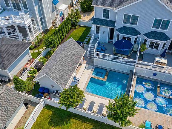 Sprawling 4 bedroom, 3.5 bath traditional style 2,274 Sq Ft town home situated on an oversized 90Ft wide by 110Ft deep lot. While most town homes in Stone Harbor are located on a 50Ft or possibly 60Ft wide lot, this particular site gives each unit owner an extra 20Ft of lot width. As you enter the home, just past a cozy covered front porch, 9Ft ceilings run throughout the entire first floor, which is dedicated solely to entertaining space. An extensive interior renovation was completed in 2014, as well as updated floors in April of 2021. A large family room is located off the front of the home, leading into a formal dining room with seating for at least 8. The expansive kitchen includes a large center island with seating for up to 5, gorgeous stone tops, and stainless steel appliances. Just off the kitchen, there is a second breakfast nook, as well as a separate den with fireplace. A dedicated laundry room and powder room rounds out the first floor. Ascending up to the second floor, you will find 3 bedrooms with two large hall bathrooms. Vaulted ceilings run throughout the master bedroom, with a dedicated en-suite bathroom. Perhaps the best feature of all is the backyard oasis, which will be hard matched to find another space like this in a town home setting on the entire island due to the size of the lot. A large rear deck, built in 2014, overlooks an incredible pool area with hot tub, with plenty of storage underneath. An open Cabana with floor to ceiling roll down shutters flanks the pool area, with ample storage for your beach gear and bikes in the rear, using a separate entry door. A large patio with fire pit is located just off the Cabana. 3 off-street parking spaces are located on the side of the home. Other updates to this home include a new roof, azek trim and gutters in 2018, with the pool and Cabana built in 2019. Located just over two blocks to an incredible beach, and a few short blocks to town, this home can serve as a great rental investment, with potential to gross over $90,000+ a season, as well as serve as a great home for personal use. Sold tastefully furnished less outdoor furniture and a small interior exclusions list provided by the sellers. Closing to occur September 2021.