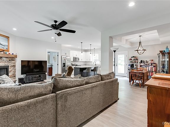 Imagine yourself coming home to 222 Agee Lane, where comfort meets style in a beautifully designed ranch-style residence. As you approach this charming home, you're greeted by its inviting front porch, perfect for enjoying a peaceful morning coffee or relaxing in the evening. Step inside, & the open-concept great room immediately draws you in. This expansive space features a gas fireplace with stunning stone surround that creates a warm atmosphere. The open layout flows seamlessly, enhancing the sense of space & making it ideal for both everyday living & entertaining guests. Your modern kitchen boasts luxurious CUSTOM CABINETS, sleek GRANITE countertops, STAINLESS STEEL appliances & oversized ISLAND for your convenience. This kitchen is both functional & stylish, perfect for preparing meals or gathering around for casual dining. The dining area, seamlessly integrated with the kitchen, offers a versatile space for hosting dinner parties. Imagine stepping out onto your private, elevated back deck, where the stress of the day melts away as you take in the sweeping views of your beautifully FENCED backyard & various wildlife that ventures across your nearly 5 ACRE property. This serene outdoor space is your personal retreat, perfect for savoring quiet moments or entertaining friends. At the end of the day, retreat to your primary bedroom which is a serene sanctuary featuring LVP flooring, spacious walk-in closet & attached en-suite bath with dual vanity, providing ample space for personal care, & a well-designed layout that enhances relaxation. Down the hall you'll find two more spacious bedrooms, a 2nd full bathroom, & a large laundry/utility room with access to back deck (perfect for your stop & drop). UPGRADES INCLUDE: 2 SHEDS, FENCED BACKYARD, LVP FLOORING throughout, STONE FIREPLACE surround. Come explore 222 Agee Lane, where every detail has been thoughtfully designed to create a welcoming & comfortable living experience. Don’t miss the chance to make this lovely house your new home!