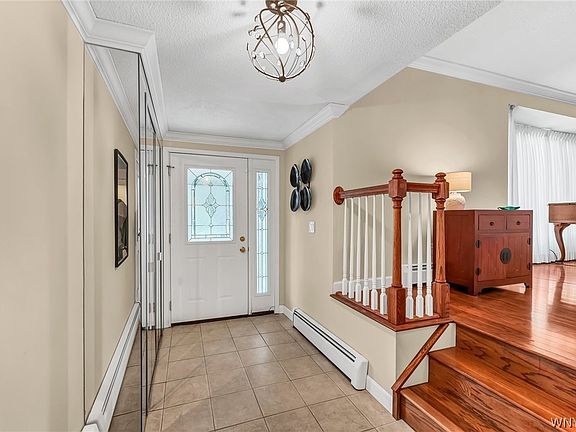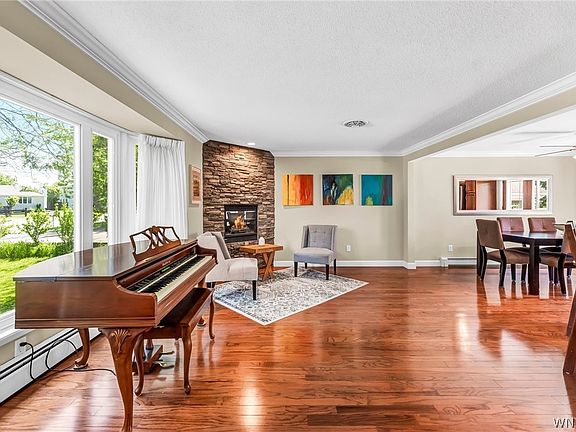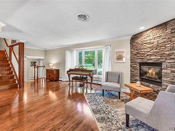 Exceptional opportunity to own this absolutely gorgeous, move-in ready, FOUR BED/1.5 BATH home in the ORCHARD PARK SCHOOL DISTRICT w/ radiant heat AND Central Air. This gem welcomes you into a large foyer w/ ample closet space. Follow beautiful hardwood floors into the spacious living room w/ gas fireplace. The open floor plan leads to the formal dining room and then to your fully renovated chef’s dream kitchen w/ custom cabinets, soft-close drawers, tile backsplash, recessed lighting and high-end SS appliances like a Thermadore six-burner stove and Jenn-Air refrigerator (included). The inviting comfortable family room w/ gas fireplace is the perfect place to relax or head out to your new, FOUR season sunroom w/ vaulted ceiling, skylights and independently controlled heating and cooling. All four beds are sizable & boast hardwood floors & plenty of closet space. The updated bath features ceramic tile, a glass-enclosed shower & a separate tub. UPDATED WINDOWS THROUGHOUT, Partially finished basement, 2 car attached garage + 2 car covered carport, HUGE yard, back deck - WAY too much to mention and meticulously maintained. Open Sat & Sun 1-3. Offers starting @1PM Tues, 6/11.