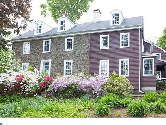 Beautiful stone farmhouse on nearly three acres blends vintage charm with modern convenience. Abundant original features include random width pine floors,deep windowsills, 6 fireplaces and unique millwork. Enter a gracious foyer which links a screened porch to mature gardens and a relaxing pool area. A large great room with exposed beams, a farmhouse kitchen and character filled living and dining rooms complete the first level. Upstairs find a light filled master with ample closets a fireplace and relaxing bath. Two additional bedrooms, a bath, convenient laundry and library are on a second floor. The third floor is home to a private suite with full bath. This rare property matches a rural feel with easy commuting to New York and Philadelphia. A rustic barn completes its unusual character.