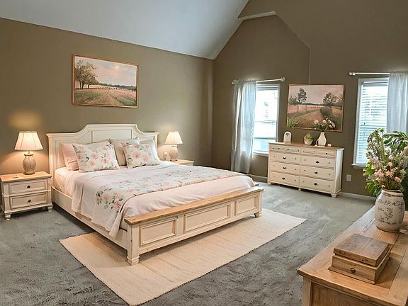 This beautiful home offers 4 bedrooms, 2.5 baths. The owner's suite is spacious with beautiful, vaulted ceilings and a fabulous bathroom and large closet. 3 additional bedrooms share an oversized bath with double sinks. Laundry is located upstairs with a washer and dryer that stay. Kitchen has custom cabinets with granite and tile back splash and stainless-steel appliances with a pantry. There is a half bath downstairs for your guest. The large great room has a gas fireplace and is open to the kitchen, with a door to the fenced in backyard with a covered porch and fireplace as well. Hardwood in dining, kitchen, and extended foyer and in half bath. This home also has a 2-car garage. Priced to sell!!