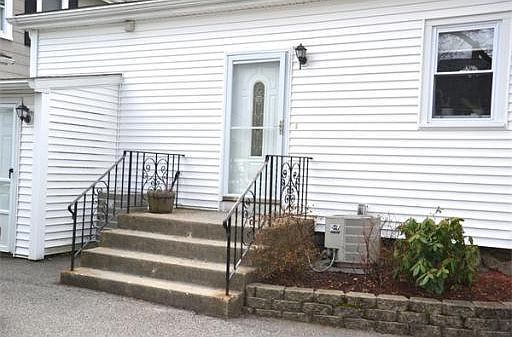 Wonderful opportunity for home ownership in this desirable and convenient Newton line location! Lovely first floor unit filled with warmth, charm, detail and sunlight. Renovated over-sized eat-in kitchen with granite counters and stainless steel appliances. Hardwood floors. 2 full bathrooms including en suite master. Recessed lights throughout. Central air. Central vac. Multi-use bonus room off kitchen can be mudroom, office space or storage area Bay windows in spacious living room and master bedroom. Generous closet space and full basement storage. Washer and dryer in unit. Rare in this market- garage space for one car and one off-street parking space. Large level fenced backyard for gardening and barbeques. Pet friendly. Feels like a single family. Walk to shops, restaurants, bus stops and the commuter rail to Boston. Convenient access to all major highways. Beautifully maintained. A gem!