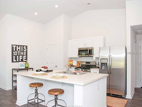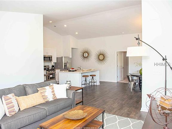 Paired ranch with an amazing open floor plan. 3 bedrooms, 2 baths, plus a separate laundry room off of the 2 car garage. Large rear covered porch to enjoy the back yard. Large kitchen island for the perfect gathering space. 5 ft walk in shower and WIC in Owner's Suite. HOA dues includes lawn care. Centrally located with easy access to the University of South Carolina Bluffton campus, I-95, Beaufort, Old Town Bluffton and the award winning beaches of Hilton Head Island. Gas community! Refrigerator and blinds included! Virtual Appointments Now Available!