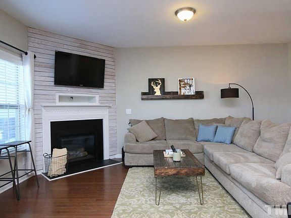 Super convenient to Hwy 55, I540 (New interchange just built!), 12 Oaks Golf Club, Shopping, Dining, Banking, etc. Almost new (2013) offers carefree HVAC, Roof, & Appliances.Lots of great features - Granite counters, hardwood flooring, stainless appliances in Kitchen with desirable white cabinets, gas log fireplace w/TV mount above, patio out back along with storage closet & fenced Yard. Oversize Master handles large furniture, dual vanities in both full baths.Your HOA dues get you swimming pool access!