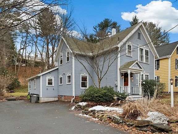 This Victorian home in Concord Center, located just minutes from shops, historical landmarks, bike trails, and dining, offers a combination of 1890’s charm & all of the modern updates & finishes you need. Large windows illuminate the open kitchen, featuring radiant heat, SS appliances, granite countertops, island w/ breakfast bar, & custom wine rack. The formal dining room w/HW floors opens to a spacious study/office w/ wall to wall built in bookshelves. Great room features wide pumpkin pine floor, brick and slate fireplace. Gorgeous heated 4-season porch boasts floor to ceiling windows & vaulted ceiling. The main floor bedroom is one of TWO primary ensuites with attached full bath. Laundry on main. Upstairs you’ll find the second ensuite BR with a spacious bathroom & double closets. Two more BR’s and a shared full bath round out the top floor. A serene backyard with established perennial gardens, fountain, and private fenced in patio provides the perfect spot to relax or entertain.