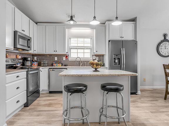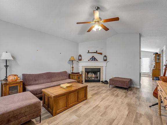 Take a look at this lovely 3 bed 2 bath home with a 2-car garage, great for first time home buyer or for someone looking to downsize. The large eat-in kitchen has newer appliances, nice cabinet and ample counted space. Vaulted ceilings, ceiling fans, tiled entry and a fireplace in the living room, all add to the cham of this lovely ranch home. Patio doors in the kitchen lead to the patio with a view of the level and fully fenced lawn.