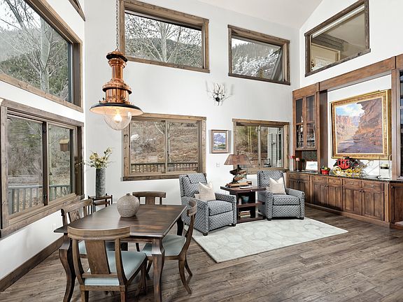 Enjoy the peace and serenity of the sounds of the river and the majestic panoramic views from this sophisticated custom residence nestled on the hillside in the world-famous Frying Pan River Valley. Big Hat offers the perfect blend of a private fishing retreat with the convenience shopping and dining just 6 miles away. Inviting and warm this home has ample windows to allow the sunlight to stream in. The open floor-plan includes soaring 25' ceilings in the family room along with a grand ledgestone fireplace. The expansive balcony overlooks the river and valley below. Watch the sunrise over the ponds & river then spend the day fishing on your own private river frontage! A luxurious master suite on the top level offers a private balcony, sitting area, walk-in closets, and a spa-like master
