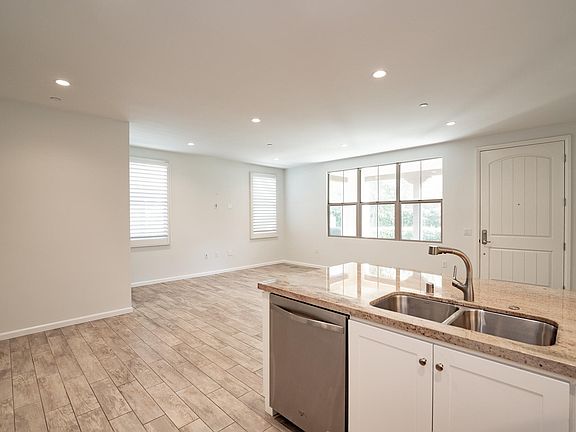 UPGRADED SINGLE-LEVEL UNIT WITH 2 BEDS AND 2 BATHS IN THE DESIRABLE EASTWOOD VILLAGE COMMUNITY! Step inside and immediately notice how open the floor plan feels. The kitchen overlooks the living and dining area, which is perfect when entertaining guests. The unit features wood-like tile flooring throughout, for ease of maintenance and keeps the inside cooler during the hot summer days. Windows throughout allow natural light in with plantation shutters on the windows. The kitchen is upgraded with granite countertop, stainless steel appliances, built-in microwave, modern backsplash tiles, recessed lighting, and white cabinets throughout with plenty of storage space. Total of 2 bedrooms and 2 baths. The primary bedroom includes its own primary bath with dual vanities, a stand-alone shower, and a walk-in closet. A Tandem garage allows for 2 car parking, with direct access. A separate stackable washer and dryer closet is located inside the unit. The community provides access to pool, spa, parks, playgrounds, trails, and much more. Conveniently located near shopping centers, markets, retail, restaurants, and much more. Part of the Irvine School District. The lease term is a 1 year lease. There is a $100 key deposit. The refrigerator, washer and dryer are included without warranty. The rent includes the HOA dues. The garage is tandem.