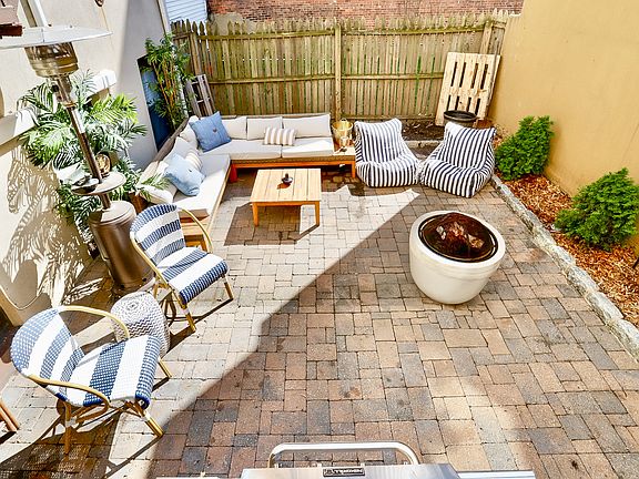 Welcome to this beautifully renovated 2 Bedroom, 1.5 Bath duplex condo with a private deeded backyard, perfectly located at 222 Bloomfield Street, close to PATH, Washington St. and fantastic eateries. The main level of this residence offers a bright open living room featuring two exposed brick walls and oversized windows with remote blinds. The fully equipped kitchen includes cherry wood cabinets, stainless steel appliances, tile backsplash. The corner dining area carves out space to enjoy a home cooked meal. In-unit full size stackable washer/dryer. A stylish half bath with custom vanity and oversized stained-glass sink completes the floor, accented by WiFi-controlled recessed lighting system. Step outside to a private terrace and backyard oasis, designed for outdoors enthusiasts with pavers and landscaping. Perfect for entertaining, this space accommodates a fire pit, BBQ, and patio furniture for a serene retreat. The lower level of this home features two spacious bedrooms, including a primary with walk-in closet and a fully renovated bathroom with heated floors and towel rack. The guest bedroom offers a massive storage closet. Additional highlights include tailored wood trim, hardwood floors thru-out, mini split AC units, and thoughtful modern upgrades across both levels. City living at its finest with the outdoor space you've been looking for. Petrak Property Group @ Liberty Realty.