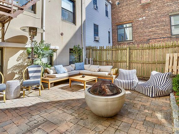 Welcome to this beautifully renovated 2 Bedroom, 1.5 Bath duplex condo with a private deeded backyard, perfectly located at 222 Bloomfield Street, close to PATH, Washington St. and fantastic eateries. The main level of this residence offers a bright open living room featuring two exposed brick walls and oversized windows with remote blinds. The fully equipped kitchen includes cherry wood cabinets, stainless steel appliances, tile backsplash. The corner dining area carves out space to enjoy a home cooked meal. In-unit full size stackable washer/dryer. A stylish half bath with custom vanity and oversized stained-glass sink completes the floor, accented by WiFi-controlled recessed lighting system. Step outside to a private terrace and backyard oasis, designed for outdoors enthusiasts with pavers and landscaping. Perfect for entertaining, this space accommodates a fire pit, BBQ, and patio furniture for a serene retreat. The lower level of this home features two spacious bedrooms, including a primary with walk-in closet and a fully renovated bathroom with heated floors and towel rack. The guest bedroom offers a massive storage closet. Additional highlights include tailored wood trim, hardwood floors thru-out, mini split AC units, and thoughtful modern upgrades across both levels. City living at its finest with the outdoor space you've been looking for.