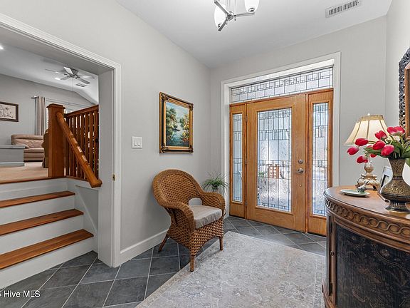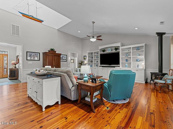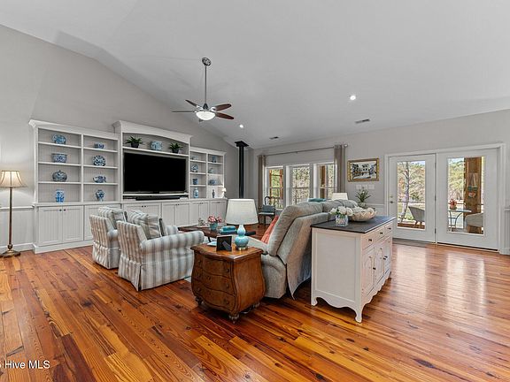 Don't miss out on this luxury waterfront property just 7 miles from Oriental Village. Nestled on beautifully manicured acreage along Brite Creek, this property features a 2,870 sqft custom-built home that radiates elegance. Every inch of this home was crafted with care, showcasing antique heart-pine floors, soaring ceilings (up to 30' at the cupola), and luxurious finishes throughout. Step into this waterfront dream home and you will find a great open layout - seamlessly connecting the kitchen, dining area, and living room. The kitchen boasts a beautiful kitchen island, extra countertop seating, and ample storage space. The additional living area can be tailored to meet your needs, whether it is used as a guest room, TV room, home gym, or other creative space. The primary bedroom is a true retreat, flooded with natural light from the beautifully crafted windows. The en-suite bathroom features a double vanity, spacious walk-in shower, and a great soaking tub, making it the perfect retreat after a long day. With breathtaking waterfront views and deep, screened-in porches designed for year-round enjoyment, you will be able to enjoy the tranquility of nature from the comfort of your home. For water enthusiasts, this home offers exceptional storage with oversized spaces, including a large workshop and detached storage building with a 10' x 10' door, perfect for storing your RV or boat. The 28' x 12' interior space gives you ample room for any other recreational gear you might have. The private dock is equipped with a 7,000 lb remote-controlled boat lift, giving easy access to the water. You will also find a manual Swinger Lift, ideal for kayaks and smaller boats. Located in the Neuse Winds community, this property combines the peacefulness of waterfront living with all the amenities needed for an active coastal lifestyle. Whether you're looking for a peaceful retreat or a place to seek adventure, this property gives you the best of both worlds.
