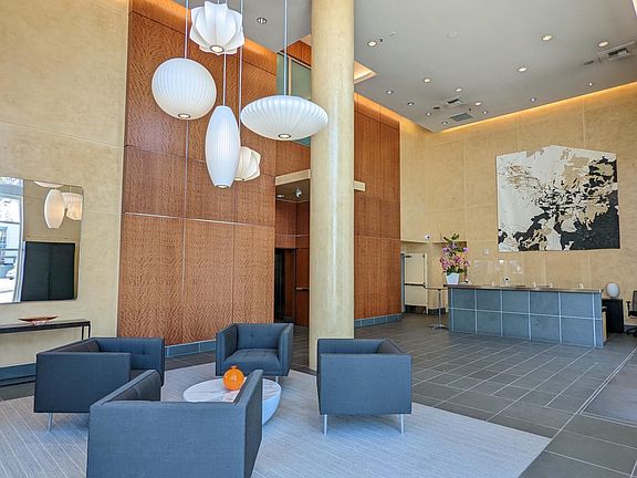 This sleek 1 bed/1 bath Jack London Square waterfront home is in the iconic Ellington luxury building. The unit is located at the Club level and boasts beautiful hardwood floors, brand new bedroom carpet, and floor to ceiling windows. Panoramic 13th floor views of the sparkling city lights and the iconic Oakland skyline right from your home. The kitchen is inviting and warm with ample granite counter space, premium stainless-steel appliances, and an interactive breakfast bar. The master bedroom has a walk-out balcony. This modern full-service high-rise has 24/7 concierge, beautiful pool deck, impressive gym, and swanky community lounge. Unit Highlights: Air-conditioning. 1 secured private garage parking (for an additional $150/month). Balcony. In-unit laundry. Large storage unit. Location: - 2 blocks from the beautiful waterfront/marina! Perfect for walks, runs, and soaking up the sun. - 6 minute walk to the Alameda/SF Ferry, BART, and free shuttle bus. The direct ferry line from Jack London to the SF Embarcadero makes this a dream of a commute on the beautiful bay. - Walk to a variety of fine restaurants, bars, breweries, theater, music, and art galleries. 1 year lease. 1 secured parking garage spot (for an added $150/month). 1 storage unit included. Water, Trash and gas included in the rent. Tenant pays for electricity and internet. $3100 security deposit. $500 move-in fee. Small pets allowed pending approval and for an additional $50/pet/month. Pets security deposit $500/pet. Furnishings not included. Couch and bed available for sale